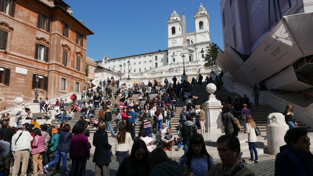 Maybe 10 more minutes and we are at the Spanish Steps. The picture above shows how crowded Rome is. This is 2017 social distancing.