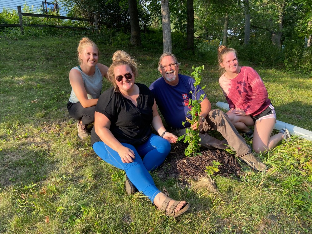 Late this fall the four of us who traveled to Switzerland together posed for a picture by the now rapidly growing baby Bettlereiche. It had a fine growing season and is now around three feet tall. I am concerned about some very cold mid-October temperatures that went down below 20 degrees. Baby Bettlereiche was still in full growth mode with healthy green leaves. I hope that short cold hasn’t done too much damage. Below is the picture of us around the tree.