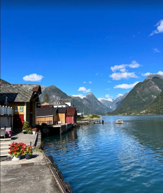 Our next stop was an area called Fjaerland and a village called Mundal. A very scenic area with a huge glacier in the mountains above the fjord.