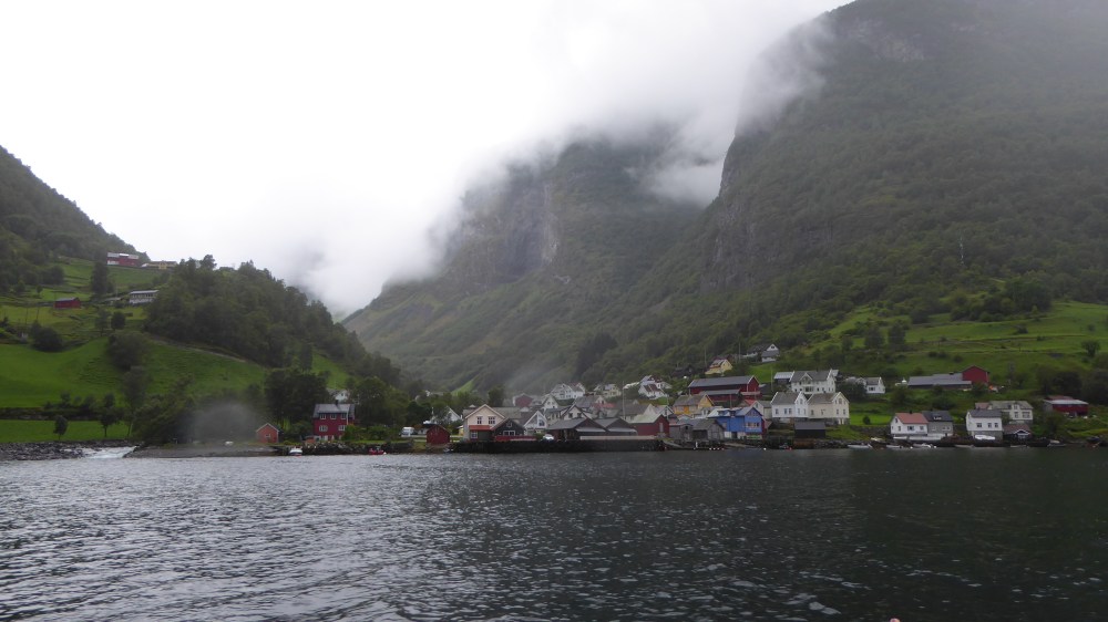 Below is a picture in the middle of the fjord. The village is Underdal and if you look at the top left of the picture we stayed up on that hill.