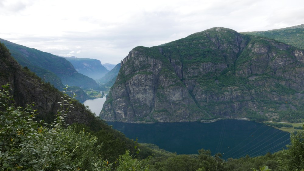 We drove up a steep curving road above Aurland to a very cool fjord overlook pictured below.