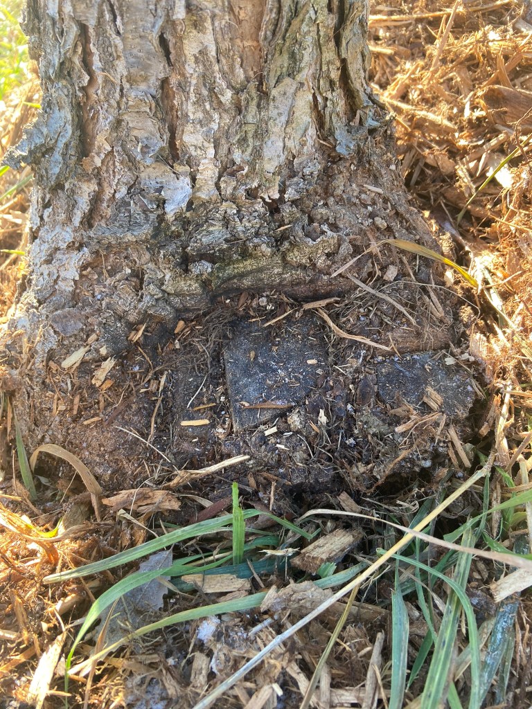 In summary I cut the about 8 year old Chinkapin oak tree down in January 2019. It has had 5 growing seasons since. It is currently around 18 feet tall which would be over three and a half feet of growth per year. My major concern was how the base covered the old stump and remained solid. I think that the base is solid. So I think it has been a successful trial.