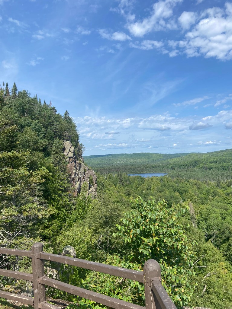 The Oberg Mountain hike is a favorite with great views of Lake Superior and also inland views like above of a lake. Imagine this view in the fall with great fall colors. The North Shore may be most popular in September/October for the tree color.